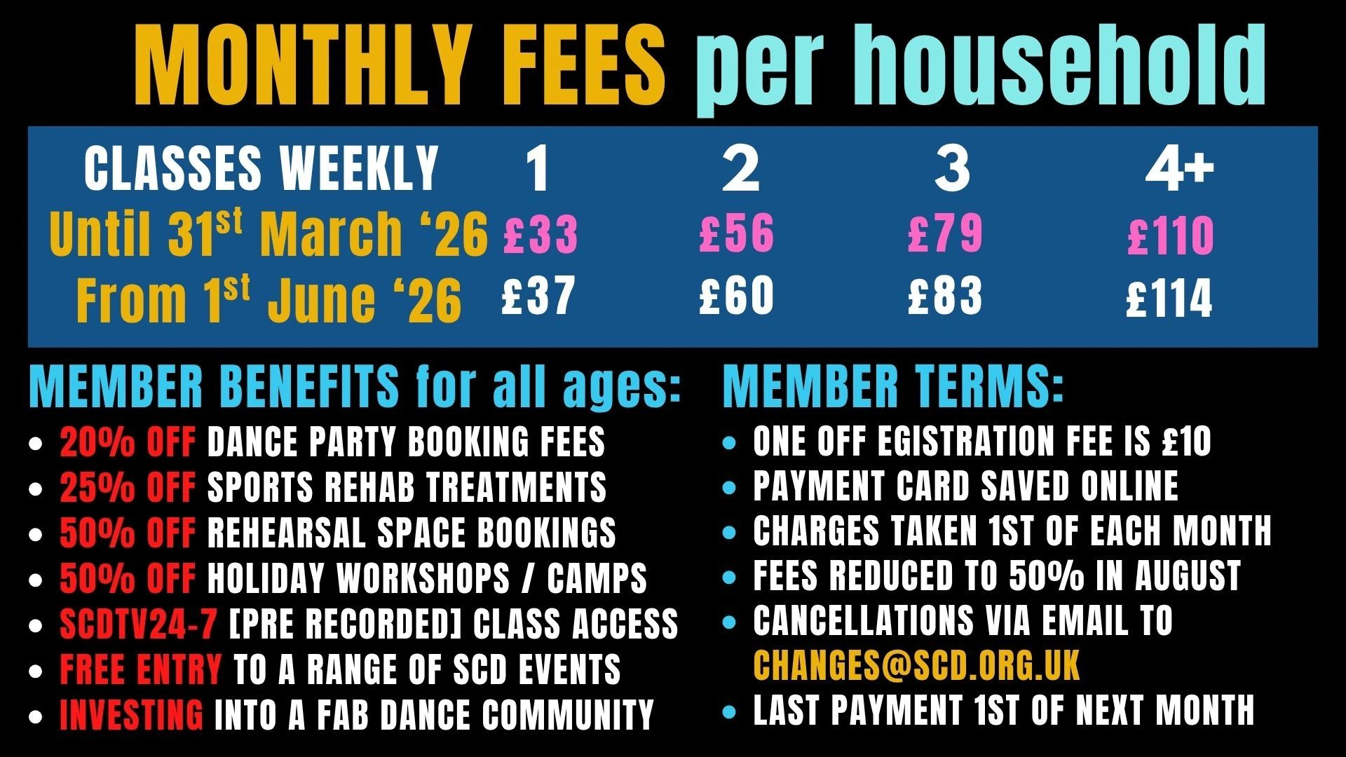 Cancellations by email to info@scd.org.uk 1 month notice. Final payment is taken on the 1st of the month following your email.